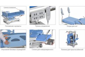 Кровать акушерская оптимально подходит для размещения роженицы в требуемом положении на всех этапах беременности, во время родов, а также и после них. Продуманная конструкция позволяет быстро и плавно изменять положение составных элементов кровати с использованием аксессуаров и приспособлений, выбираемых с учетом специфических требований на всех этапах наблюдений и вмешательств. Изделие обеспечивает оптимальные условия работы медицинского персонала, а также позволяет выполнять акушерские неполосные операции.